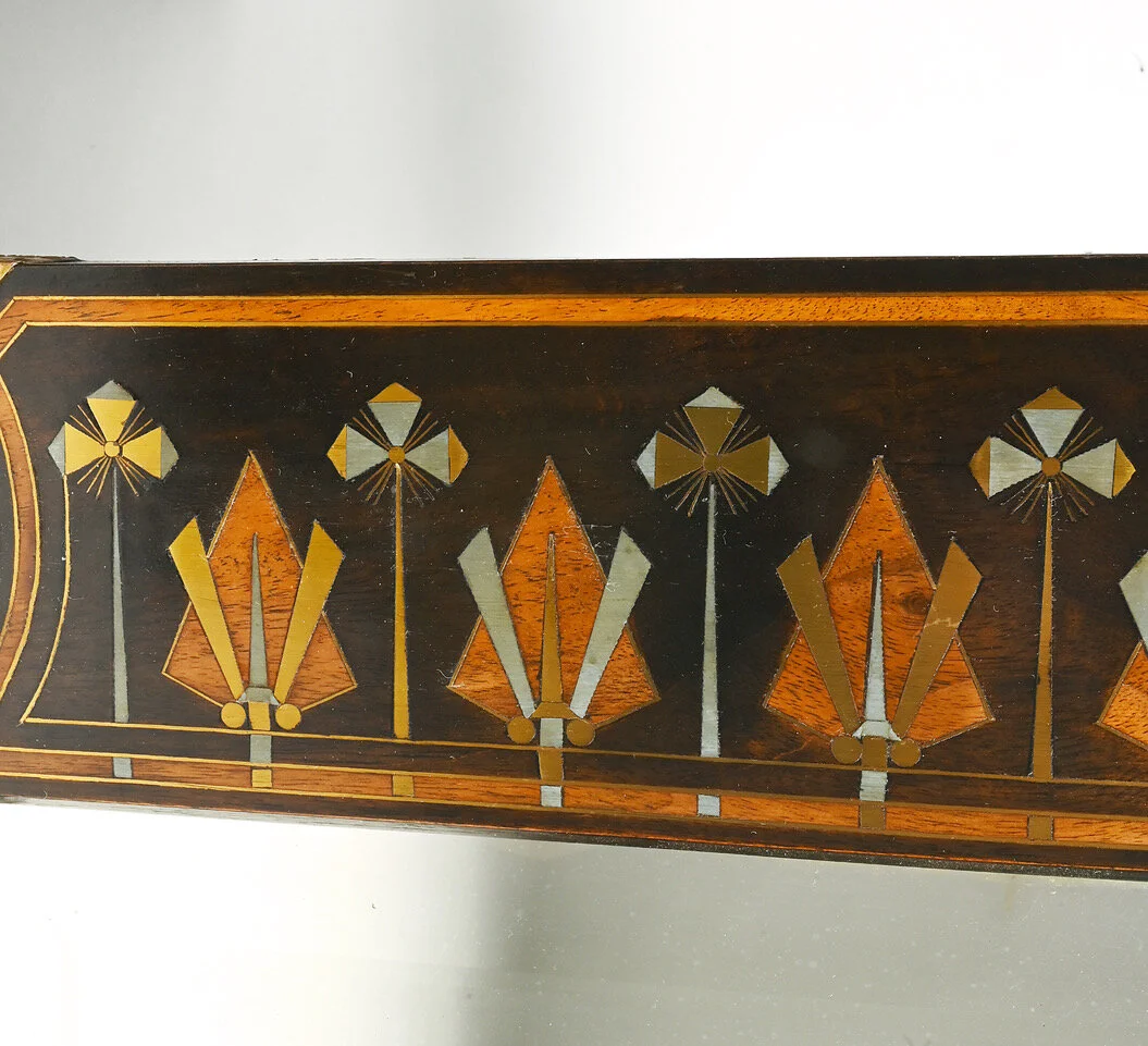 Inlaid Brass and Pewter, Stained Walnut, Hammered Brass, Glass